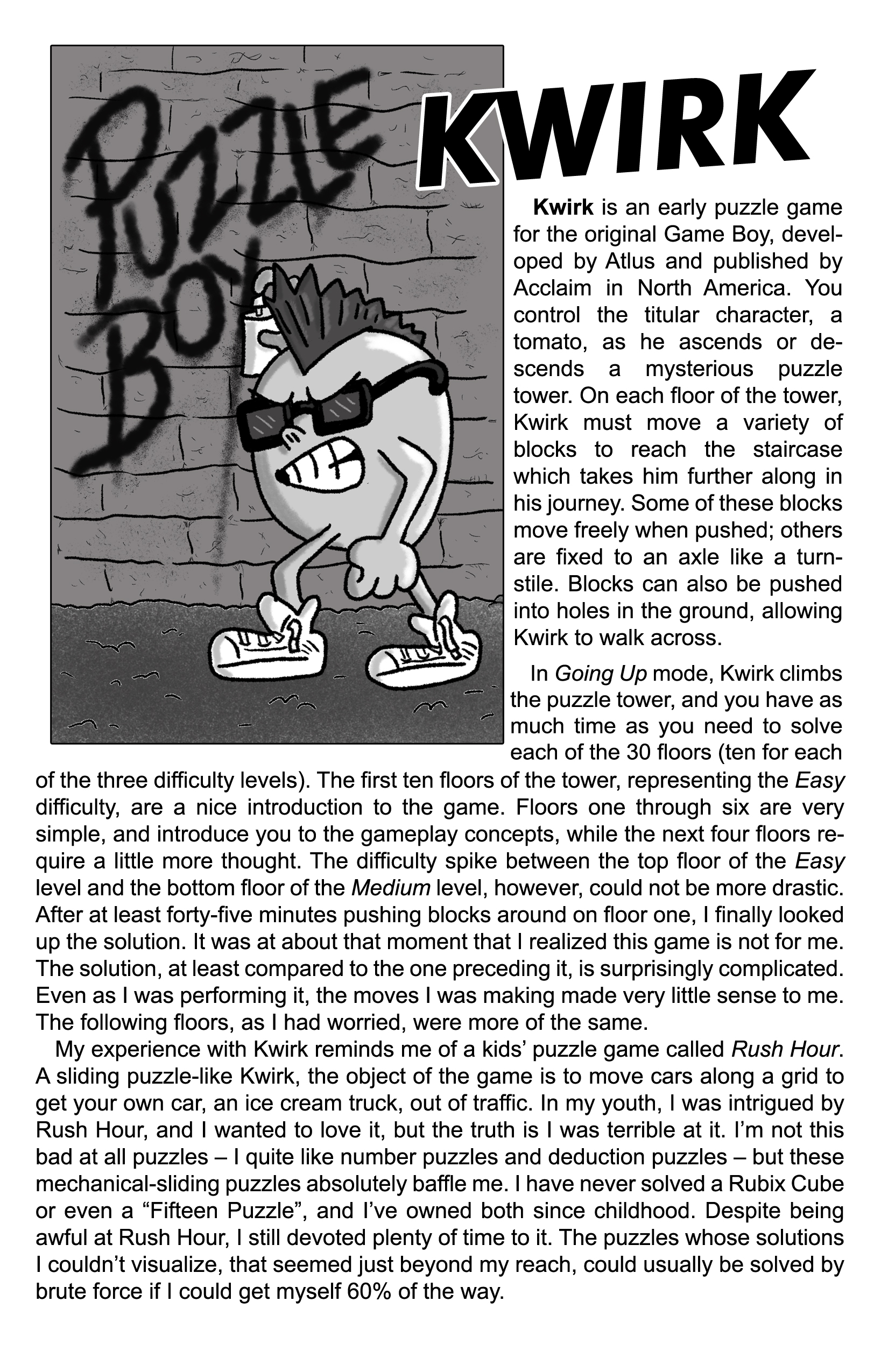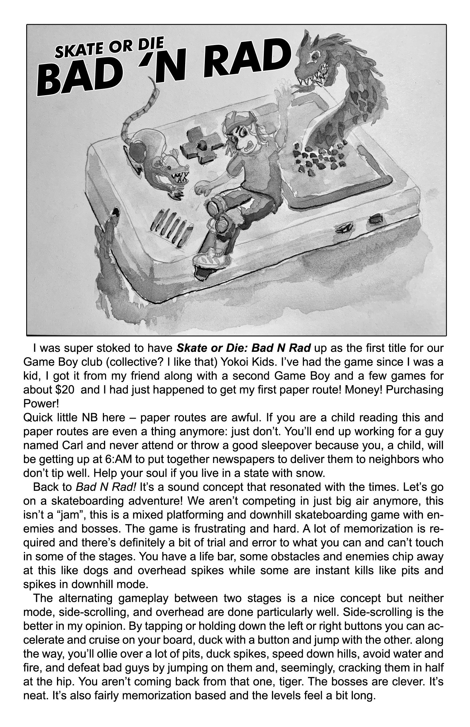 It's 90 pages covering 25 Game Boy games through essays, ramblings, comics, illustrations, haikus, and a recipe.