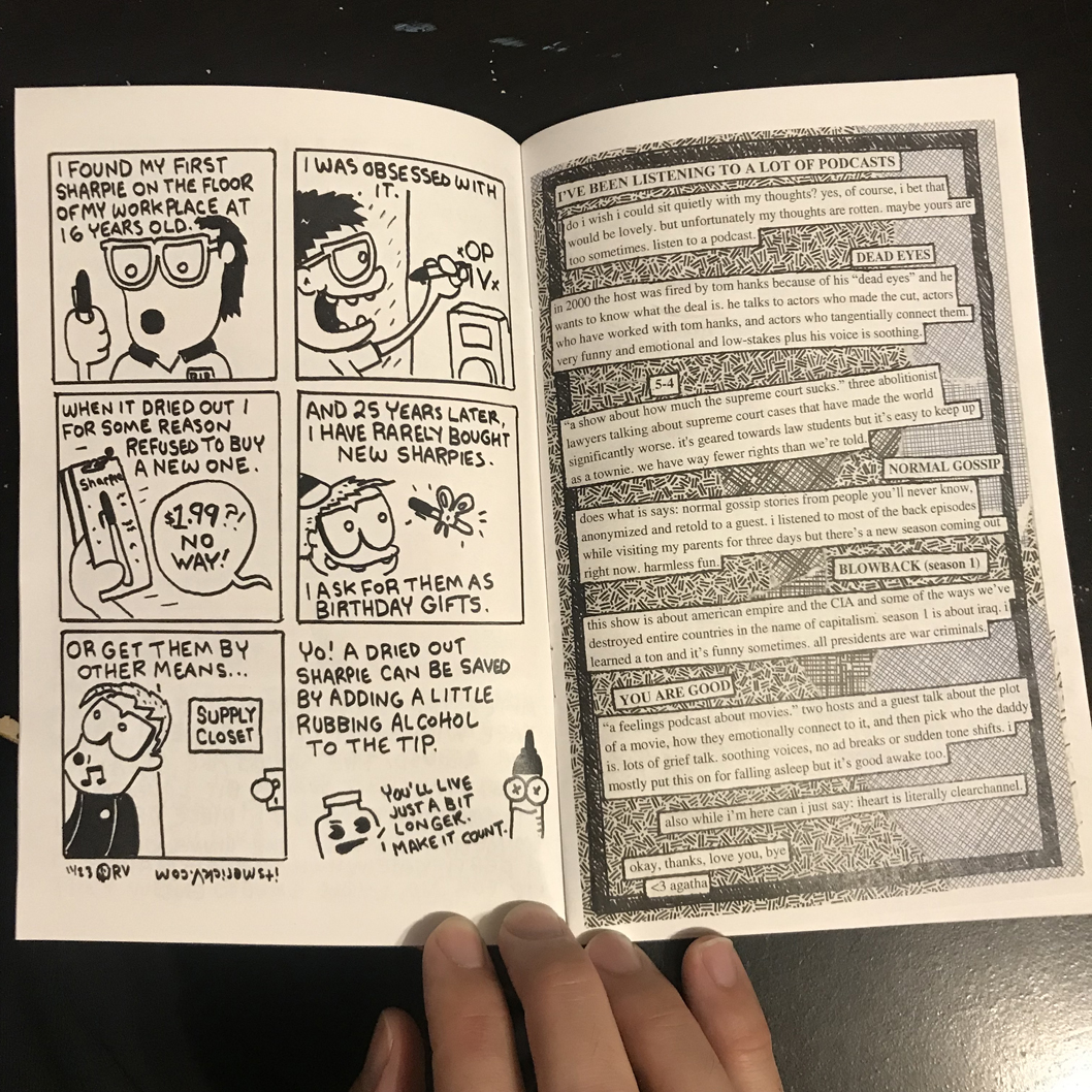 A classic, cut-n-paste style zine about travel, grafitti, skateboarding and the like. Featuring photos, comics, reviews and all the things mentioned previously. IT IS NOT BY ME and the editor chooses to be anonymous. But I do have a one page comic and a random doodle in it.