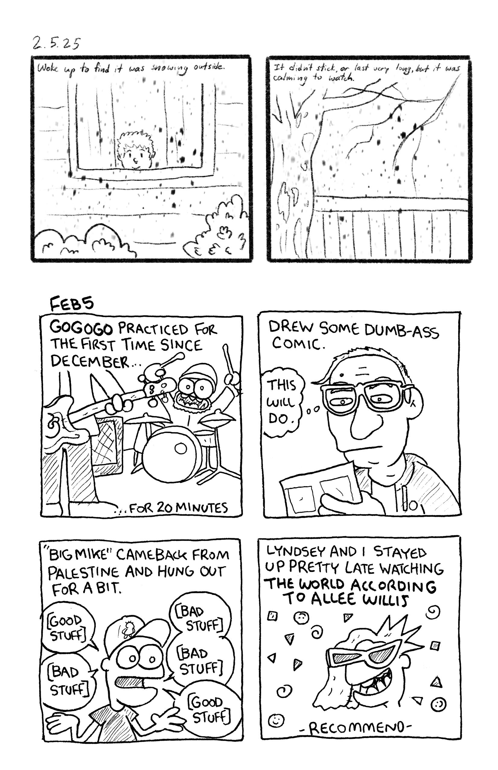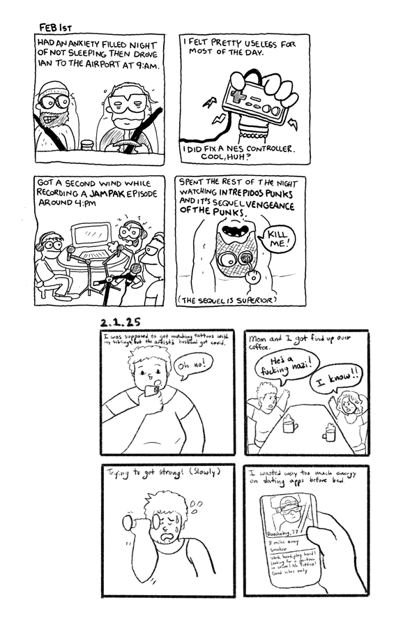 Rick V. and Ben Wrex draw a comic for every day in February 2025. They are cold and miserable but manage to watch things on TV and get shit done. Lotsa laughs with some insight thrown in occasionally.